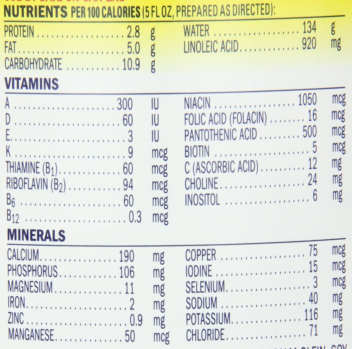 Whey Protein Concentrate (from cow's milk), Vegetable Oils, Palm Olein Oil, Soy Oil, Coconut Oil, High Oleic Safflower and/or High Oleic Sunflower Oil, Lactose, Corn Maltodextrin, Contains Less Than 2% of:, Potassim citrate, Potassium Phosphate, Calcium Chloride, Calcium Phosphate, Sodium Iodide, Manganese Sulfate, Sodium Selenite, M. Alpina Oil (a source of Arachidonic Acid (ARA)), C. Cohnii Oil (a source of Docosadexaenoic Acid (DHA)), Sodium Ascorbate, Inositol, Choline Bitartrate, Alpha Tocopherol Acetate (Vitamin E), Acetate, Niacinamide, Calcium Pantothenate, Riboflavin, Vitamin A Palminate, Pyridoxine Hydrochloride, Thiamine Mononitrate, Folic Acid (Folate) Vitamin B12, Phylloquinone, Biotin, Vitamin D3, Vitamin B12, Taurine, Nucleotides, Cytidine 5 Monophasphate, Disodium Uridine 5' Monophosphate, Adenosine 5' Monophosphate, Disodium Guanosine 5' Monophosphate, Ascorbyl Palmitate (Vitamin C), Mixed Tocopherols, L Carnitine, B. lactis Cultures, Soy Lecithin